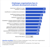 But there’s a twist: the average number of challenges per developer rises with company age. Developers in firms older than 30 years face 2.9 challenges each, compared to 2.3 in the youngest companies.